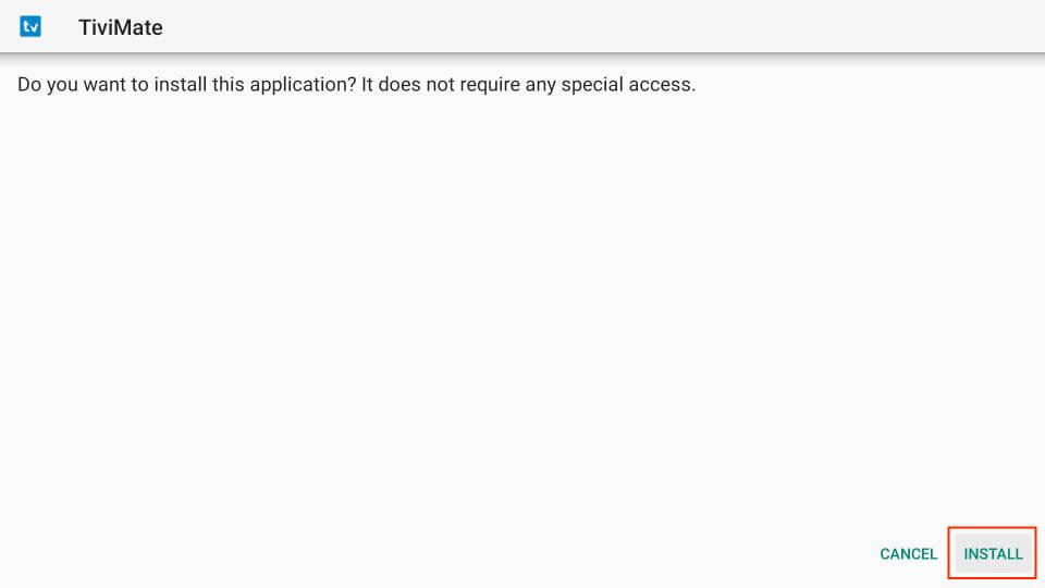 - Install TiviMate: When the download is complete, click Install.